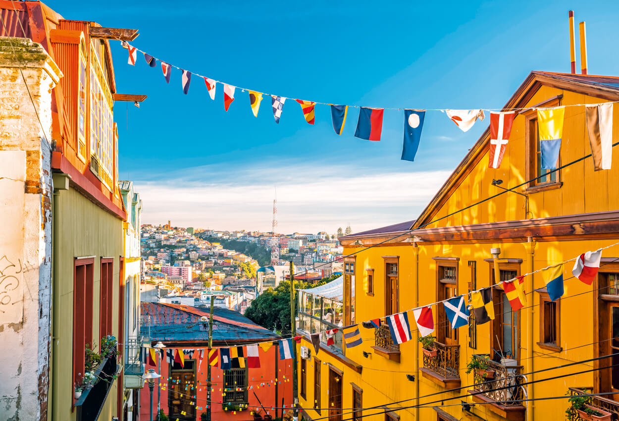 Mit unvergesslichen Erinnerungen an Patagonien, wo mehr Schafe als Menschen leben, fliegen die Reiseteilnehmer zurück in die Zivilisation. In der Millionenmetropole Santiago de Chile erwartet sie der urbane Gegenentwurf zur patagonischen Abgeschiedenheit. Die chilenische Hauptstadt speist ihr Flair unter anderem aus dem architektonischen Kontrast altehrwürdiger Bauten und kühner Wolkenkratzer. Nördlich der Grossstadt wächst auch eine Hafenstadt in die Höhe: Valparaiso, deren farbenfrohe Häuser wie Schwalbennester an den Steilhängen der pazifischen Küste kleben. Genauso ein Fest für die Augen ist die Fahrt durch die Anden. Denn die längste Bergkette der Welt kann mit etlichen Sechstausendern aufwarten – selbst für Schweizer ein Spektakel! Die anschliessenden Tage in Mendoza stehen ganz im Zeichen der Kulinarik. Umringt von Rebbergen darf selbstverständlich auch eine Weindegustation nicht fehlen; zumal einige von Südamerikas edelsten Tropfen aus den umliegenden Weingütern stammen. Gastgeber dafür ist die Bodega von Yello-Sänger Dieter Meier.