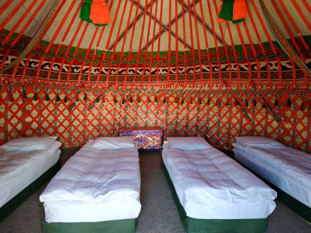 Als Gott die Welt schuf und das Land an die Völker verteilte, kamen die Kirgisen zu spät. Doch er hatte Erbarmen und gab ihnen einen Teil seines Paradieses ab. So zumindest die etwas selbstironische Legende. Doch bei der Fahrt auf 1600 Meter über Meer rund um den zweitgrössten Bergsee der Welt, dem Yssykköl-See, wird klar, dass das nicht von ungefähr kommt: Das Wasser funkelt in der Sonne, dahinter wechselnde Berglandschaften. Liebliche Lehmberge, rote Sandsteinfelsen und weisse Schneeberge. Der Yssykköl-See ist eingekesselt zwischen zwei Bergketten – nördlich der Kungej-Alatau und südlich der Terskej-Alatau mit Bergspitzen, die viereinhalbtausend Meter in die Höhe ragen.